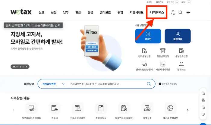 1. 위택스 홈페이지에서 자동차세 조회